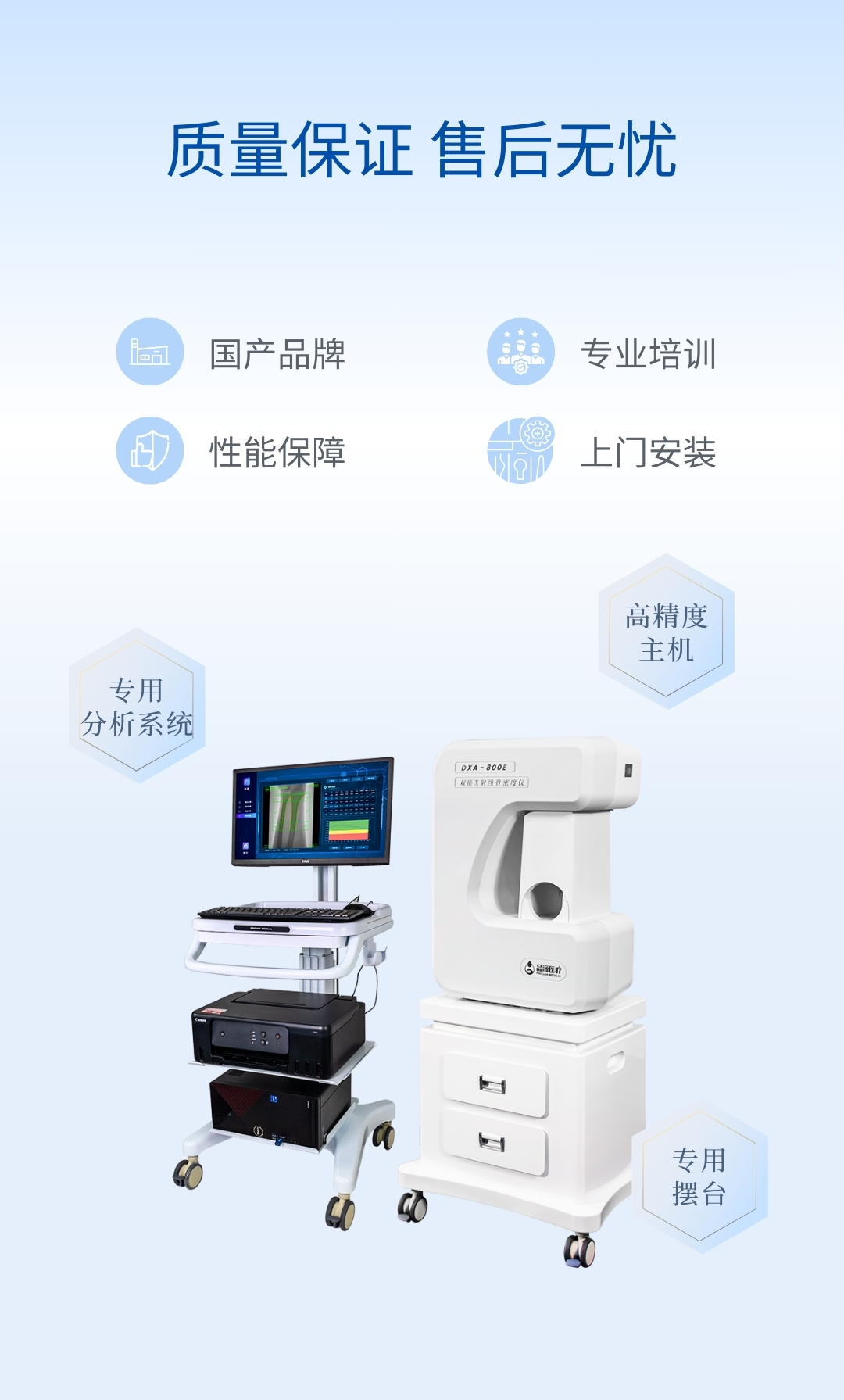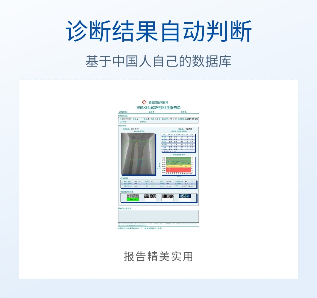 適用于骨科醫院、康復醫院、體檢中心、保健中心、老年病醫院、療養院、大型社區醫院,綜合醫院的內分泌科、骨科、骨質疏松科、老年病科、體檢科、康復科等。